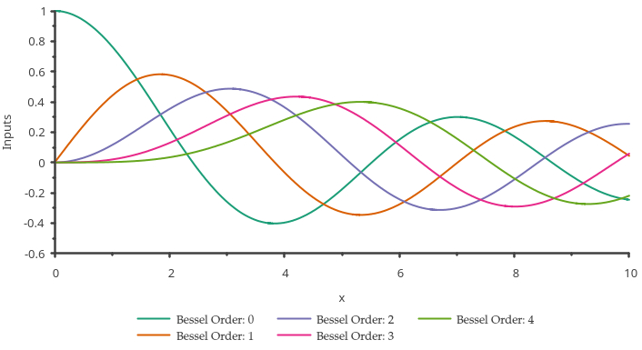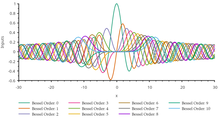 plot.drawCurve(inputs, vectorMap["J" + std::to_string(0)]).label("Bessel Order: "+std::to_string(order));