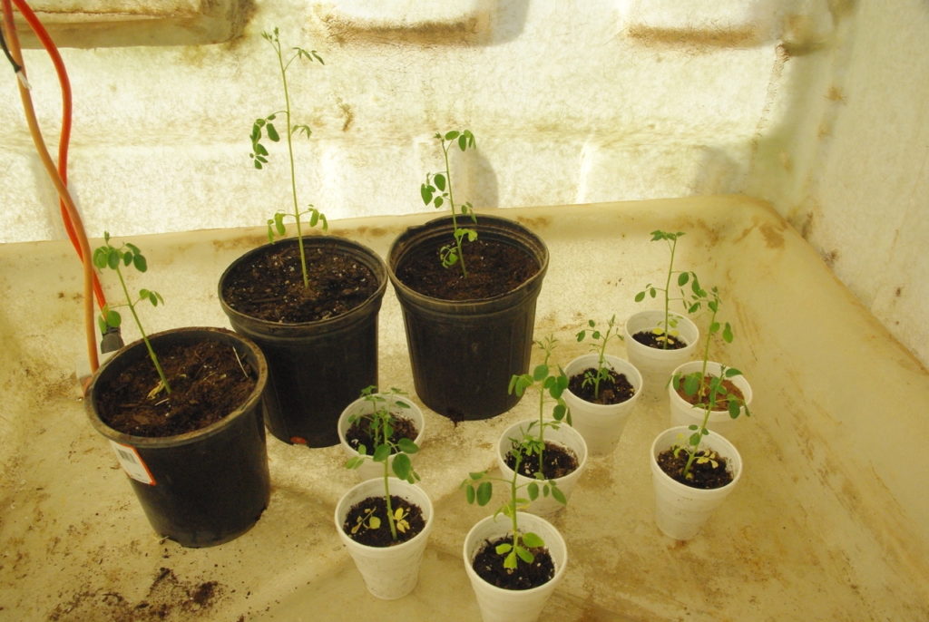 Even though we are now getting into the cooler weather, the Moringa plants are still growing! Had to transplant two more into larger containers yesterday. And, in about a week, it looks like several more will also require replanting.