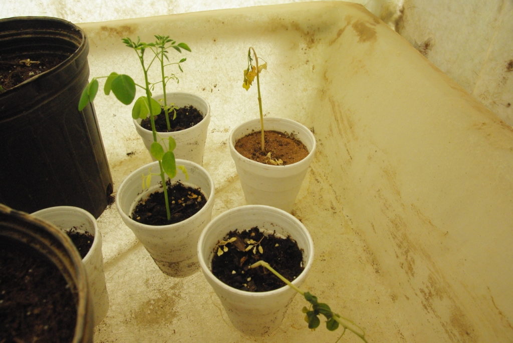 We have now reached critical times! The weather has taken a turn for the worst, at least for Moringa sprouts! We have had several nights of close to freezing or below temperatures here in the high Desert of the Southwest. As shown, some sprouts seem to have bitten the proverbial dust because of the cold.