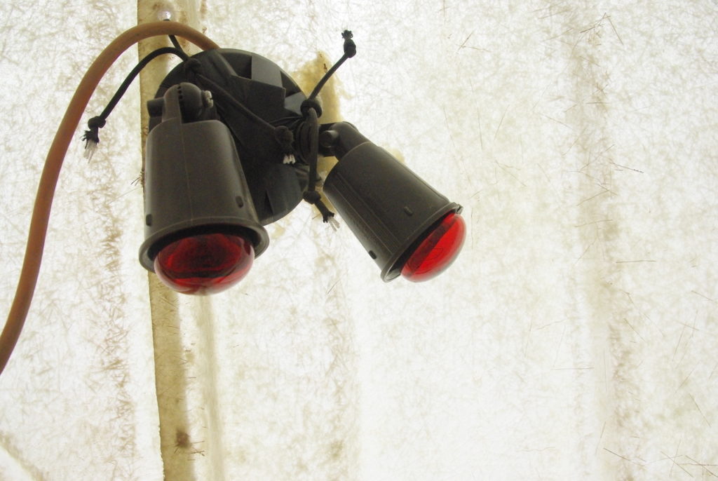 Seems my attempt to keep the cold at bay is only partially successful. I installed two 40w infrared (IR) heat lamps, but it becomes apparent just two is not enough.