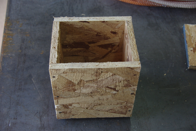 With the three pieces in the tray, it make a fairly compact bundle about 5” x 4”, and only about 5” high. So, I made a small box with scrap OSB sheet pieces to keep it out of the weather.