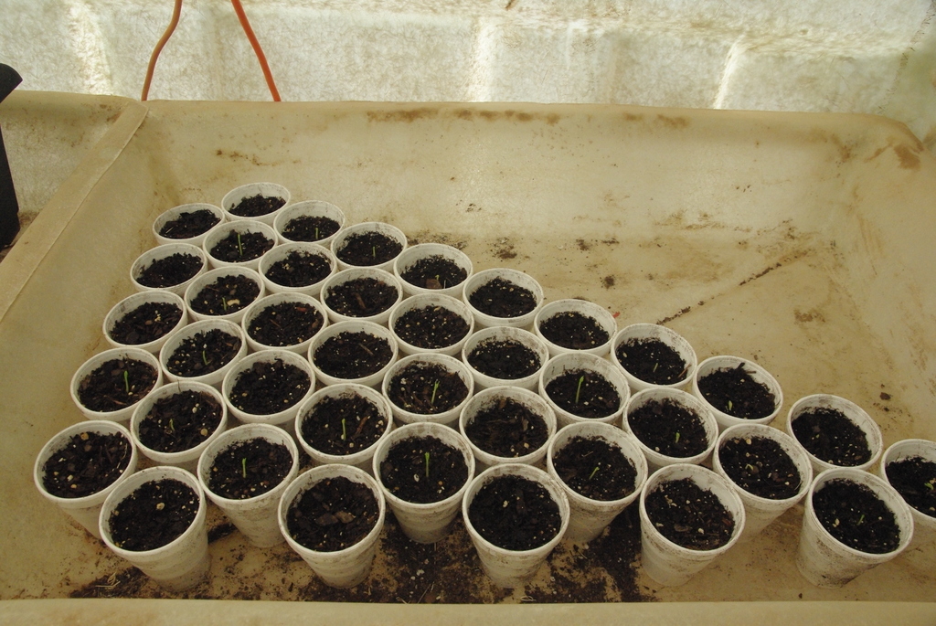 During the experiment late last year where I planted some seeds which grew not quite as quick as these, I had to replant them in quart pots. This time I will do the same, but will need a LOT more pots, as I only had a few that time. As we intend to grow as many as we can, we will have to acquire not only the quart size, but also perhaps some gallon sizes. Maybe, if we intend to keep some in pots all year, we will get some 5-gallon sizes, just in case we want to keep some inside during the following winter.
