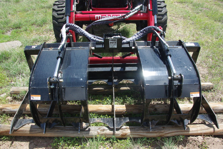 The tractor came with the front loader seen above, but we wanted to move piles of branches, so we also acquired the grabber. Both have the skid steer style Quick Connect system standard.