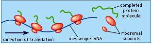 Messenger RNA (mRNA) carries information about a protein sequence to the ribosomes, the protein synthesis factories in the cell. It is coded so that every three nucleotides (a codon) corresponds to one amino acid. In eukaryotic cells, once precursor mRNA (pre-mRNA) has been transcribed from DNA, it is processed to mature mRNA. This removes its introns—non-coding sections of the pre-mRNA. The mRNA is then exported from the nucleus to the cytoplasm, where it is bound to ribosomes and translated into its corresponding protein form with the help of transfer RNA (tRNA). In prokaryotic cells, which do not have nucleus and cytoplasm compartments, mRNA can bind to ribosomes while it is being transcribed from DNA. After a certain amount of time, the message degrades into its component nucleotides with the assistance of ribonucleases.
