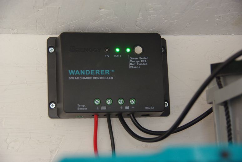 After that, the remaining parts were trivial to connect. The first step was connecting the battery to the charge controller. This was to prevent an open voltage surge from the solar panels through the charge controller, with no battery to absorb the excess. Not good for longevity of the charge controller.