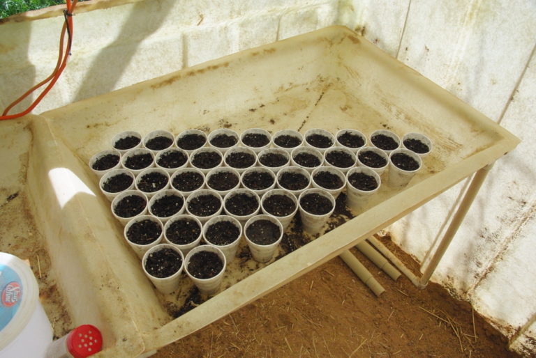 So today I planted the seeds in these small coffee cups, which seemed to work so well for the first batch back in September of last year. I again planted them using normal potting soil, as the Moringas don’t like heavy compacted soils, and the potting soil resists too much compacting.