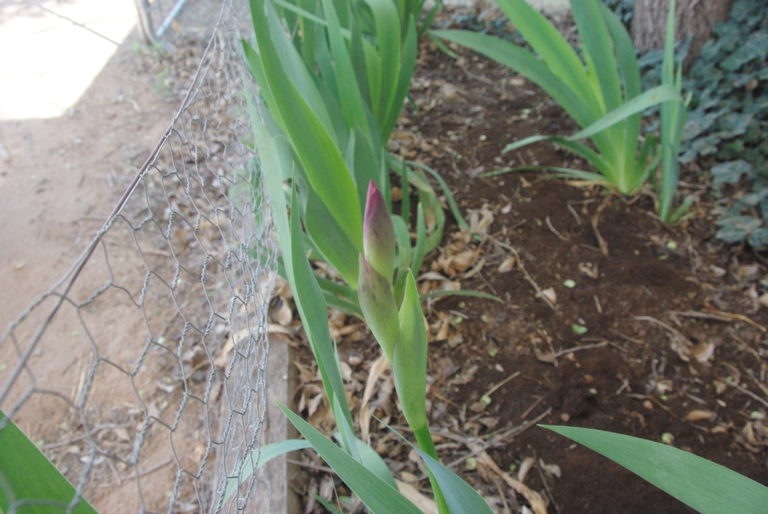 These Iris shoots are already “going great guns” as the saying goes. As the sun is still further south than the edge of the house, they are still in the shade all day, and will be for another month perhaps.