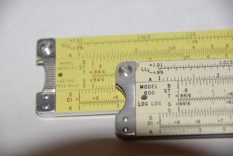 One obvious variation is the “Eye-Saver” yellow background of the N600 vs. the white background of the 600. Additionally, note the red color for reversed scales of the N600-ES, such as the DI, T, S and -LL scales. Admittedly, this makes identification easier for reading those scales. However, this is a minor thing for those familar with slide rule usage.