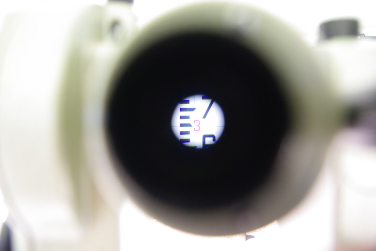 We set up a level rod on the center post and take a reading to determine the relative height. I say relative because each time the transit is set up, the reading will be different. And that’s okay because each setup for each day requires establishing a new height. However, regardless of the actual reading on the theodolite, the post height is the same.