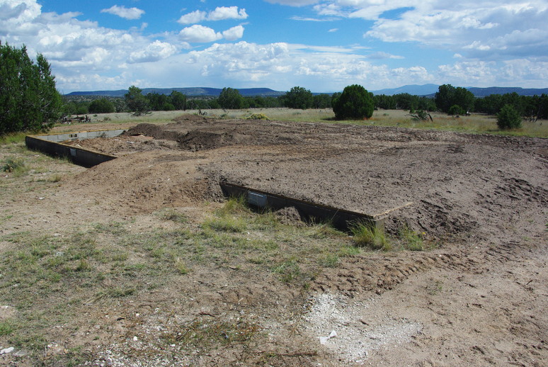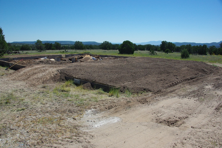 After two loads of dirt filled into the foundation, it is only about half covered. The other half is a bit deeper, so will take more dirt, and probably require three to four loads to cap it off nicely.