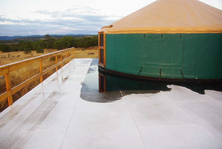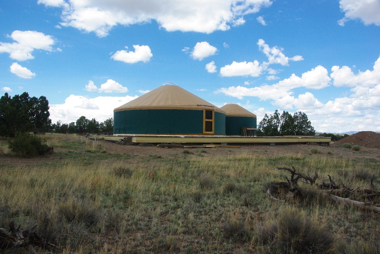 If you recall, we posted earlier where we were moving the small yurt from the old deck, where it was originally assembled about 10 years ago, to a new platform which was much more stable. That was in the posts: